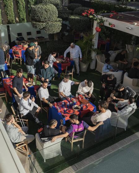 阿劳霍是球队中积极推动团体活动的领袖之一,拉菲尼亚在社媒上分享了聚餐的多张照片,照片中可以看到球员们围坐在蓝红色的桌布旁,氛围轻松友好。照片中有一个有趣的细节:佩德里穿着训练服出席,说明他仍在进行伤病恢复,而其他球员则穿着休闲装。